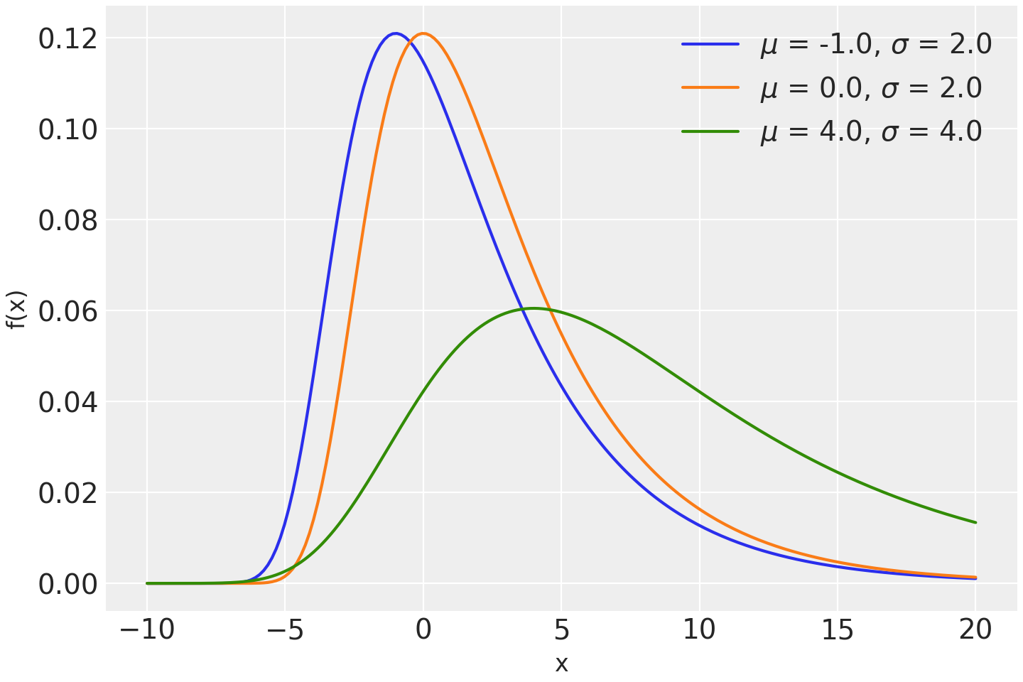 \[f(x \mid \mu,\sigma) = \frac{1}{\sqrt{2\pi}\sigma}e^{-\frac{1}{2}\left(z + e^{-z}\right)},\]where